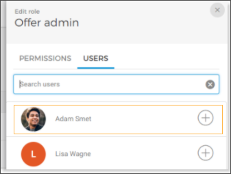 From the tab Users, you can assign users to the role. Click on the search bar. A list of users will appear. Add users and click Save.